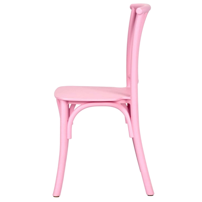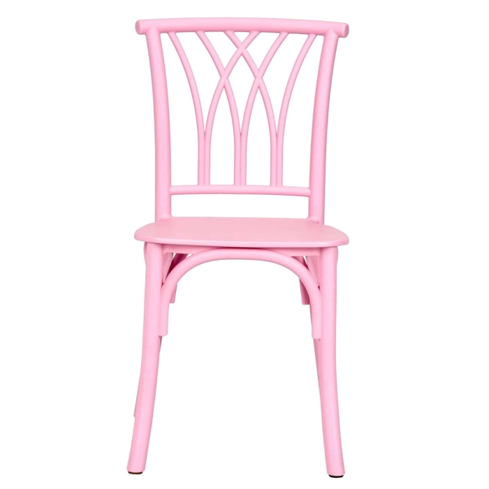 A playful pink kids chair made from tough resin that offers strength and durability the lightweight design makes it easy to move and store while the willow style back adds charm and comfort ideal for schools events and childrens spaces