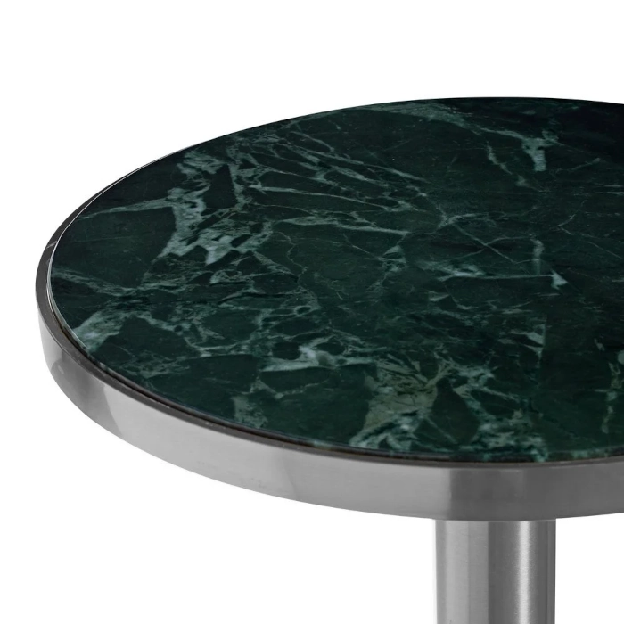 Meticulously designed with a unique marble top (pink terrazzo, black, white, green) and a sleek gunmetal grey or gold base, the Tribeca Bar Table exudes opulence and dynamic stability, perfect for cocktails.